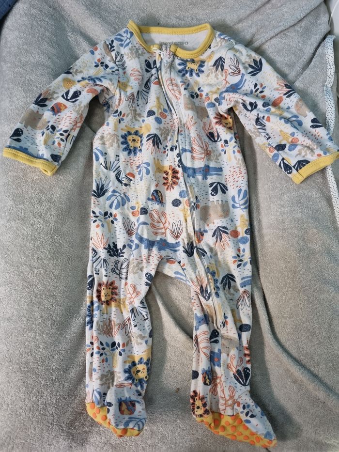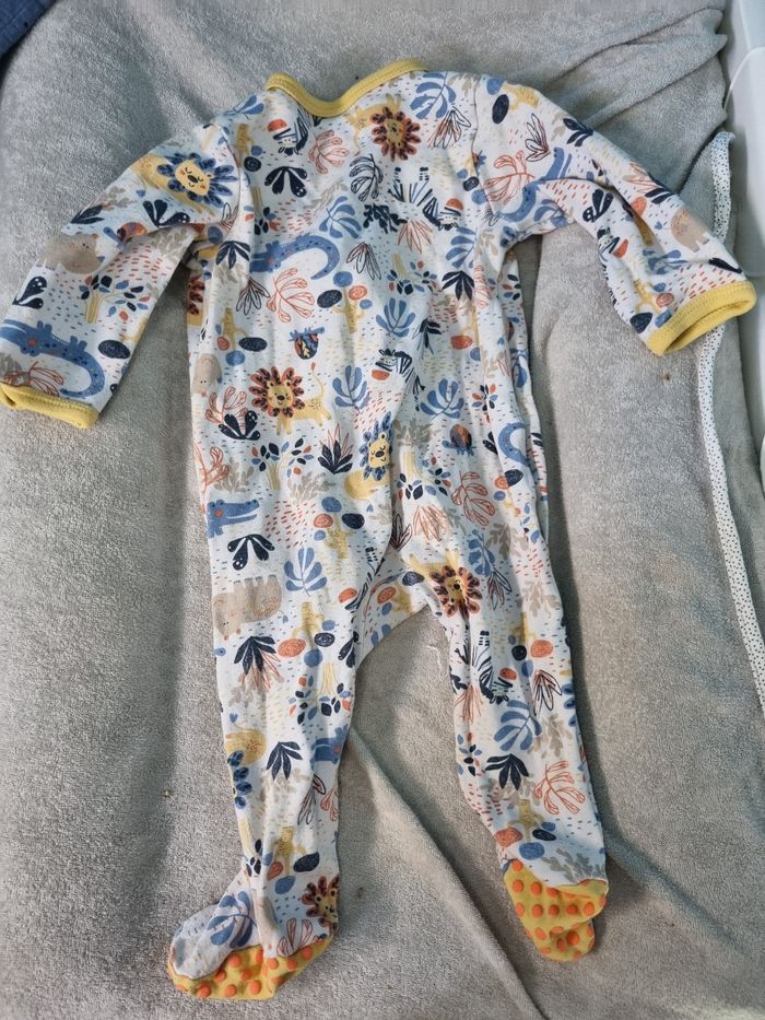 Bonjour, je vend un lot de 2 pyjamas 6 mois Le "savane" de marque In Extenso, le dinosaure de marque gemo Utilisés mais bon état
