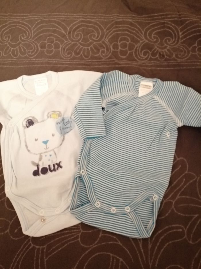 Body naissance absorba Très bon état 1 rayé bleu turquoise et blanc 1 bleu ciel avec un petit chien