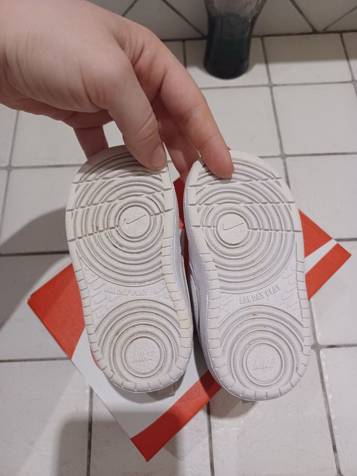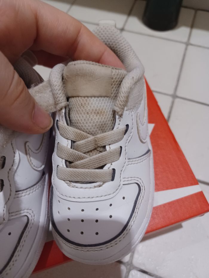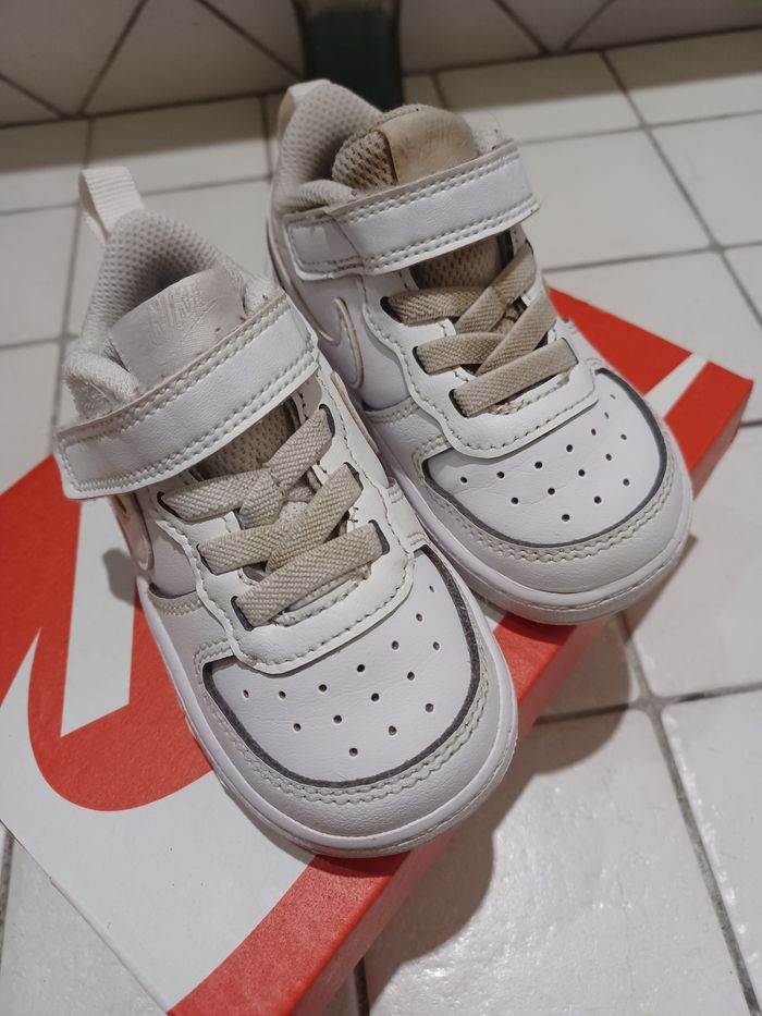 Basket nike blanche en bon état, juste les élastique et une languette légèrement tacher Pointure 21 Prix neuves 40€