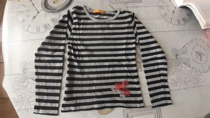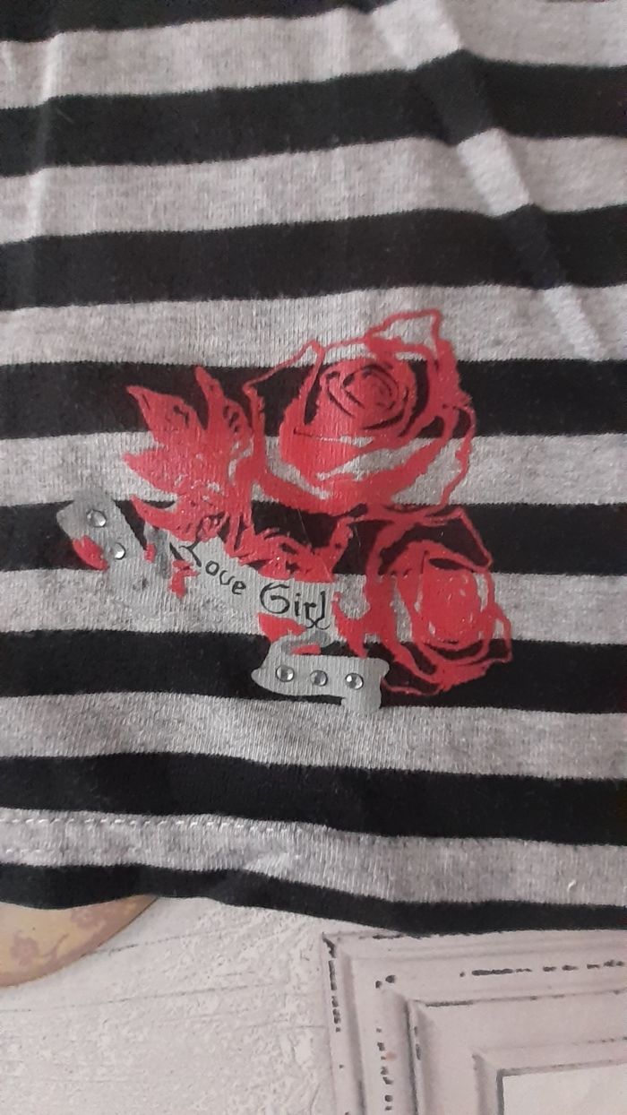 Sweet rayé noir et gris motif roses 6 ans (noté 8 ans)