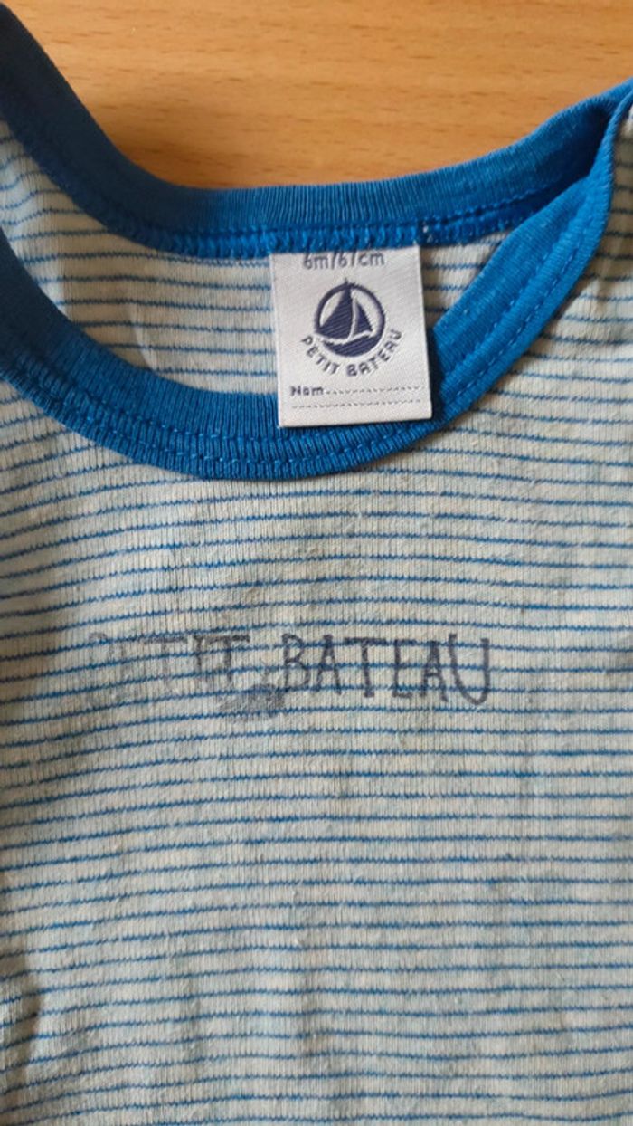 Bodie petit bateau sans manches, rayé bleu et gris. Un peu délavé. Réduction sur les lots