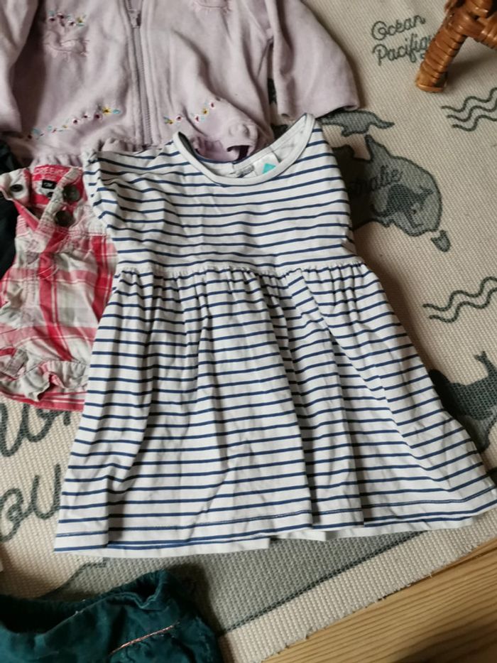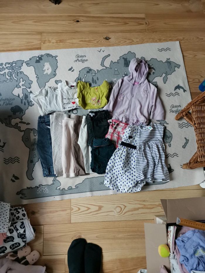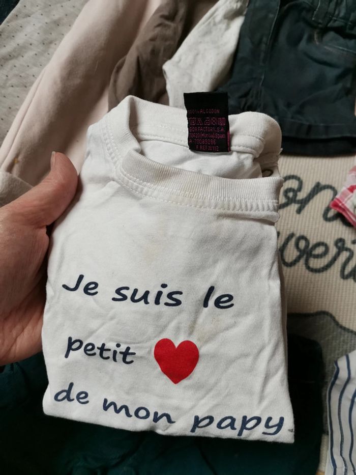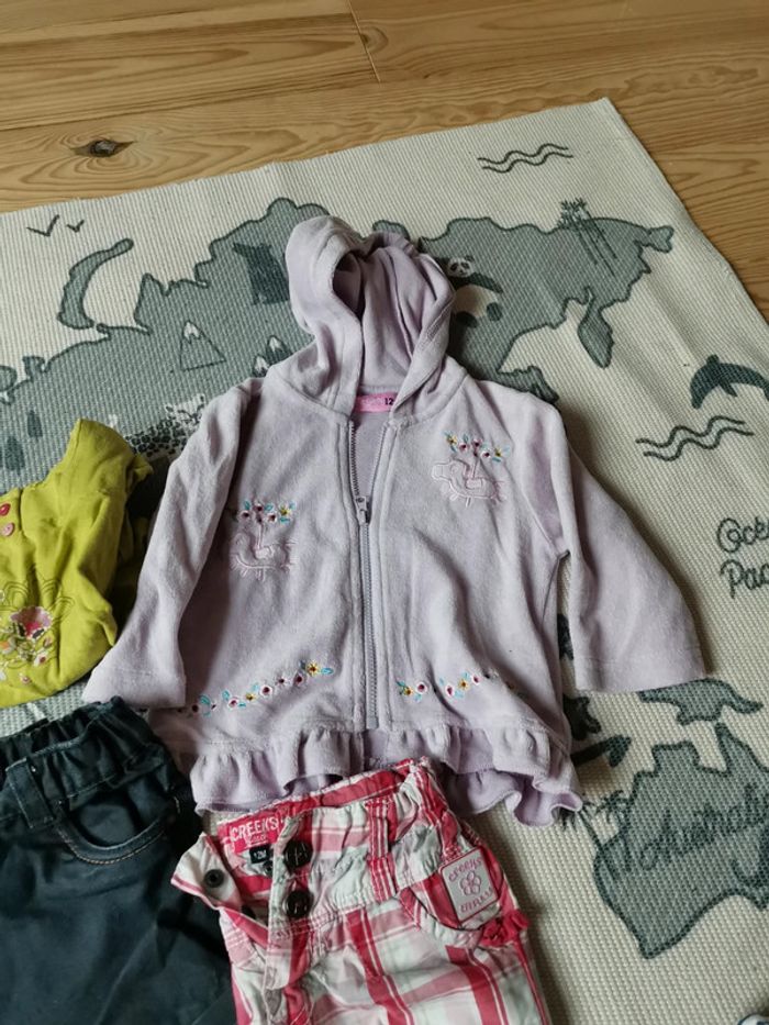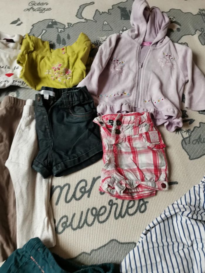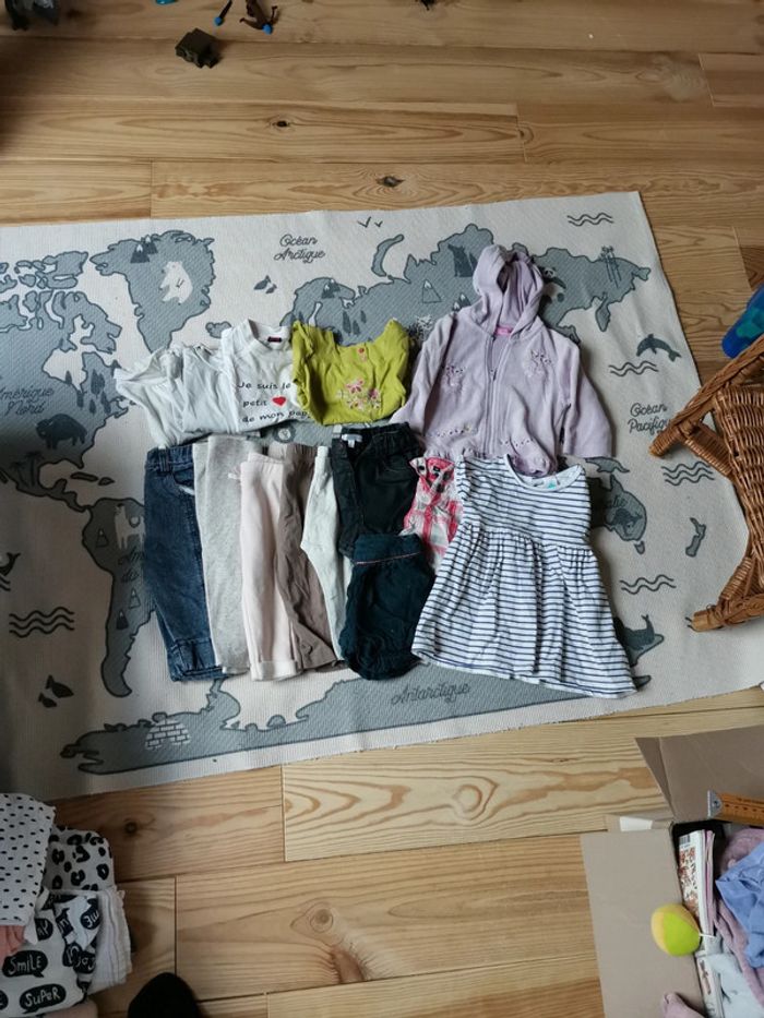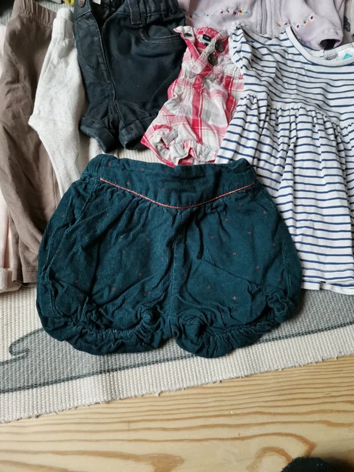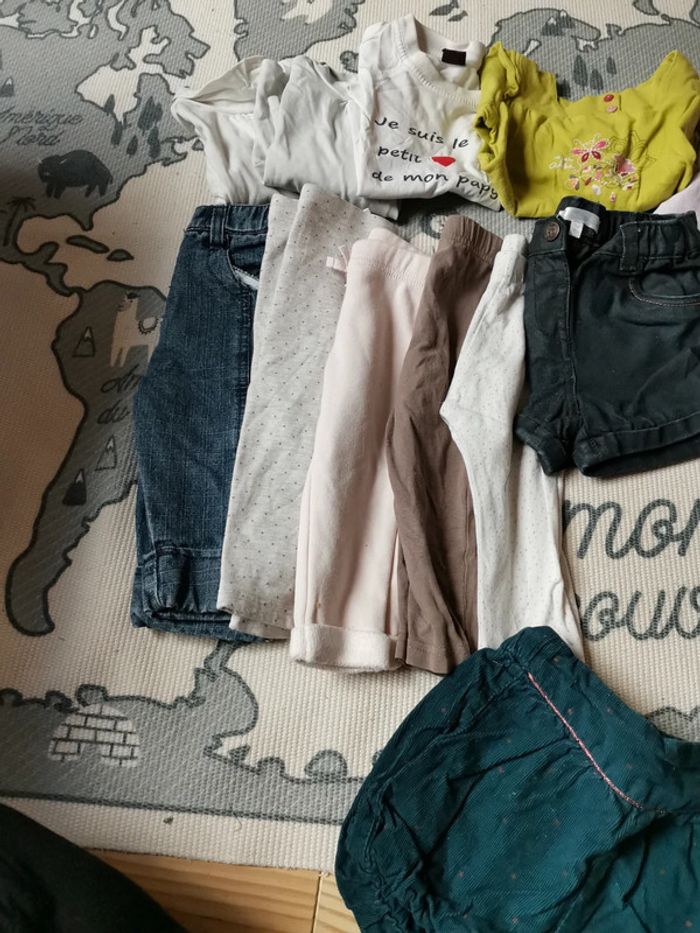 2 sous pull 1 haut Une robe 3 shorts Une veste 2 leggins léger 12 mois Un jeans 2 leggins chaud Le haut avec papy est taché mais je le donne