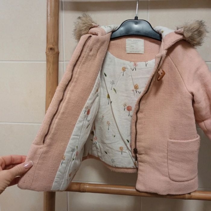Joli manteau rose Zara BabyGirl Outerwear collection 2 / 3 ans 98 cm la fausse f o u r r u r e sur la capuche est amovible - photo numéro 1