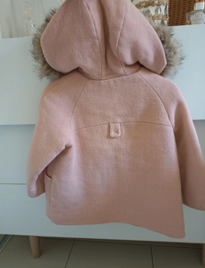 Joli manteau rose Zara BabyGirl Outerwear collection 2 / 3 ans 98 cm la fausse f o u r r u r e sur la capuche est amovible - photo numéro 7