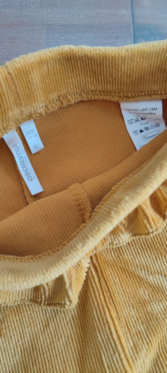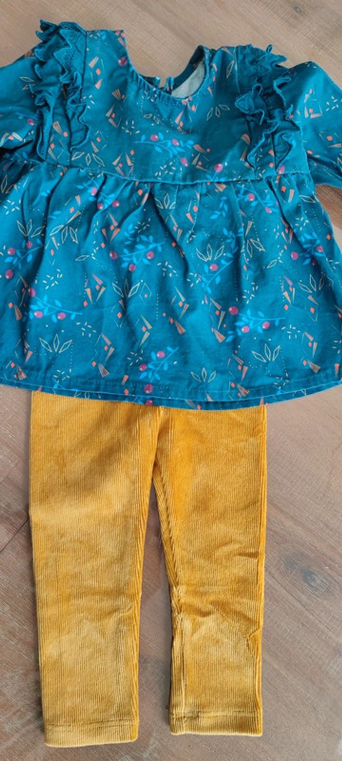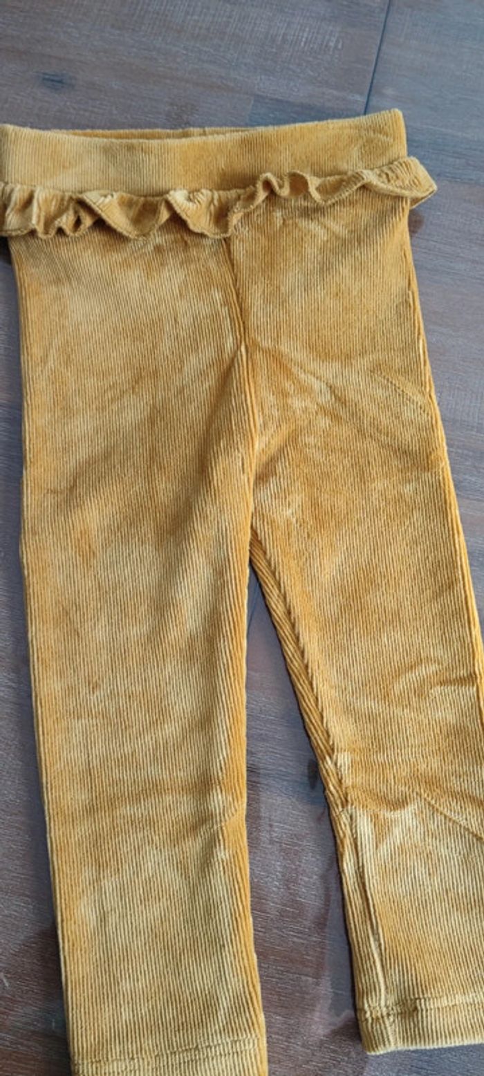 Joli legging Jaune moutarde Velours côtelé Petit volant a la taille Porté qu'une seule fois, état neuf Marque Orchestra Taille 18mois Peut être assorti a une blouse bleue vendue dans le dressing (dernière photo) , 10€ l'ensemble Envoi rapide #cyboulette44fille18mois