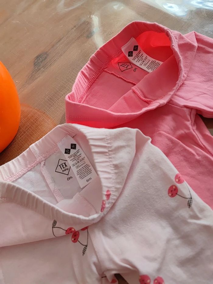 Lot de 2 leggings Un rose Et un rose clair avec motifs cerises Marque Tex 6 mois Très peu portés N'hésitez pas à visionner le dressing 😉