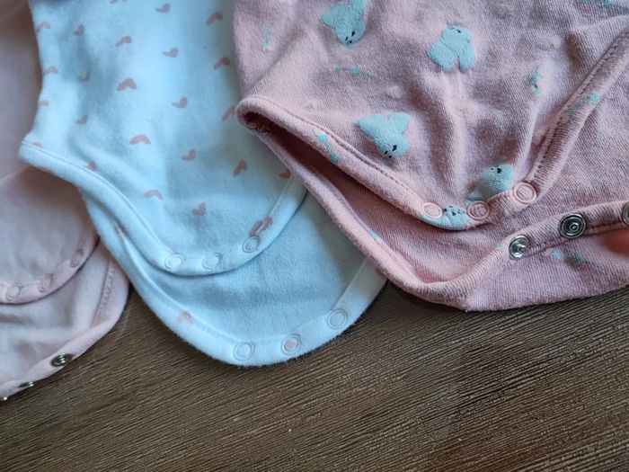 Lot de 3 bodies manches longues Rose et blanc Peu portés, très bon état Marque basic fpc Taille 3 mois, 60cms #cyboulette44fille3mois