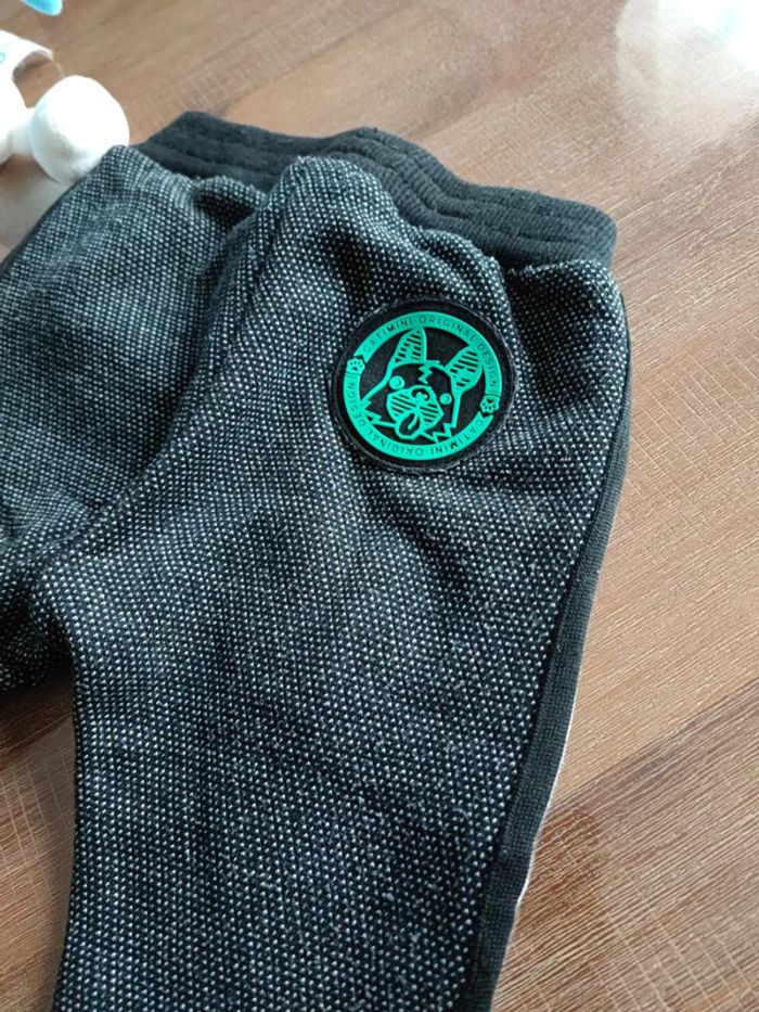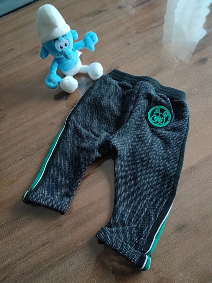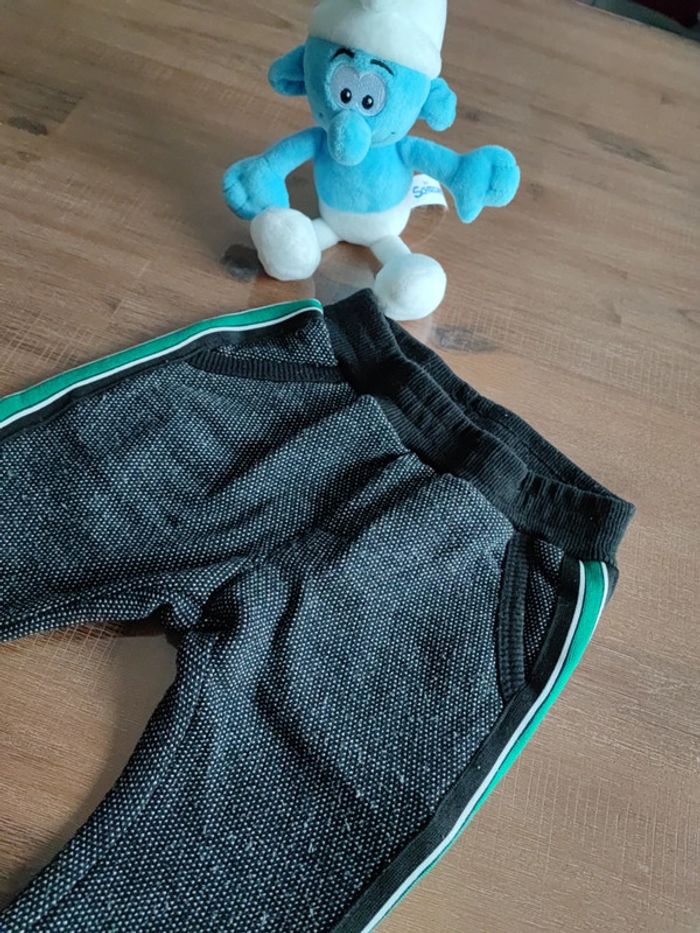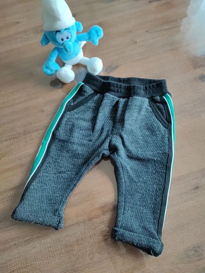 Bas de jogging noir moucheté, bandes vertes latérales, marque catimini, taille 6 mois 68cms, quelques petites peluches (qui s'enlèvent) mais bon état *Assorti au petit polo motifs chiens taille 9 mois dans le dressing #cyboulette44garcon9mois