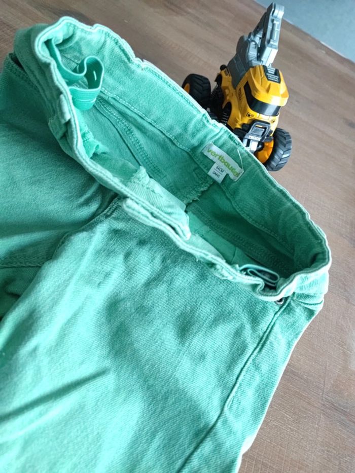 Short en jean vert, stretch, taille ajustable, marque Vertbaudet, taille 3ans 94cms, état quasi neuf, très peu porté #cyboulette44garcon36mois