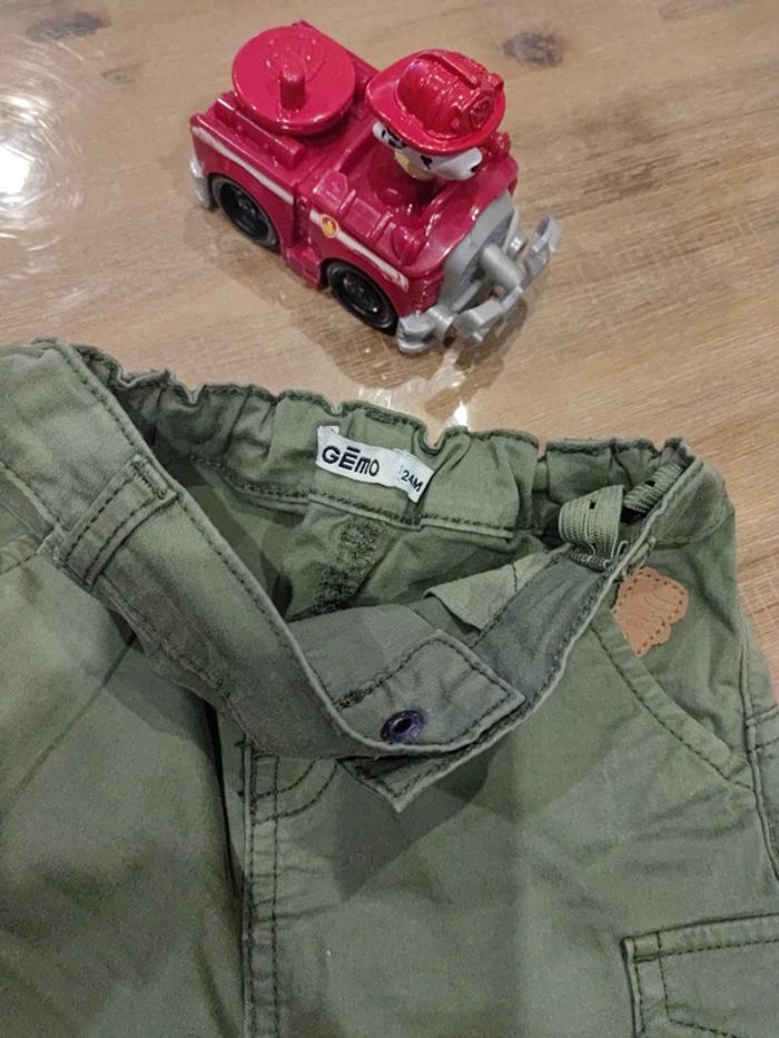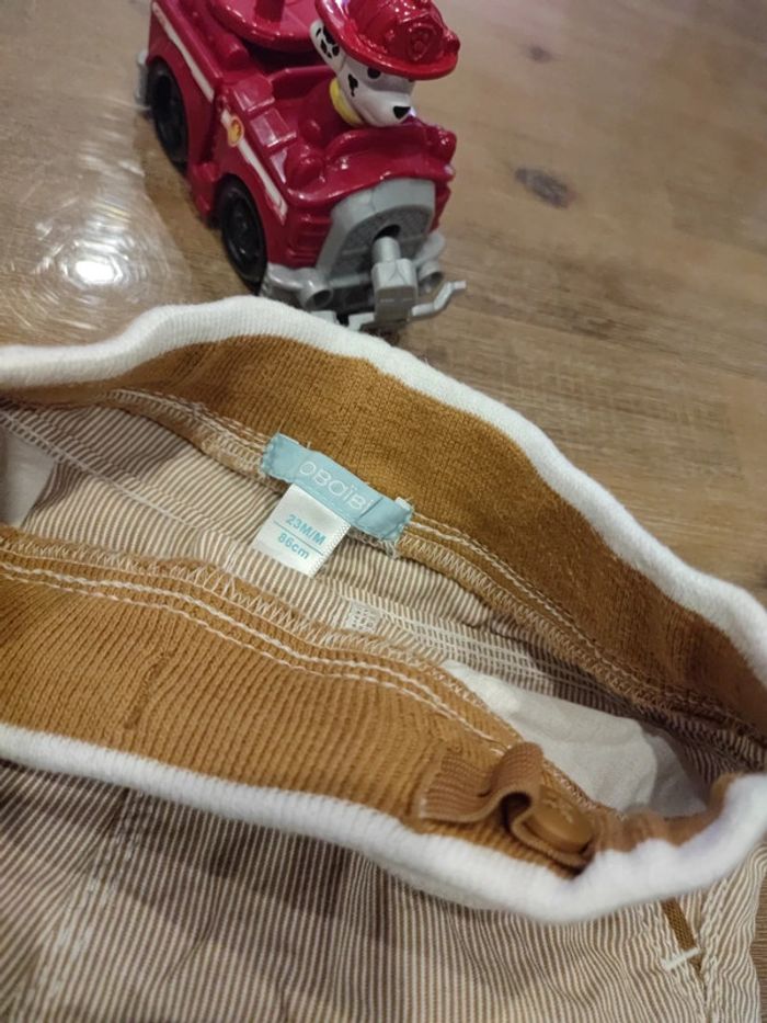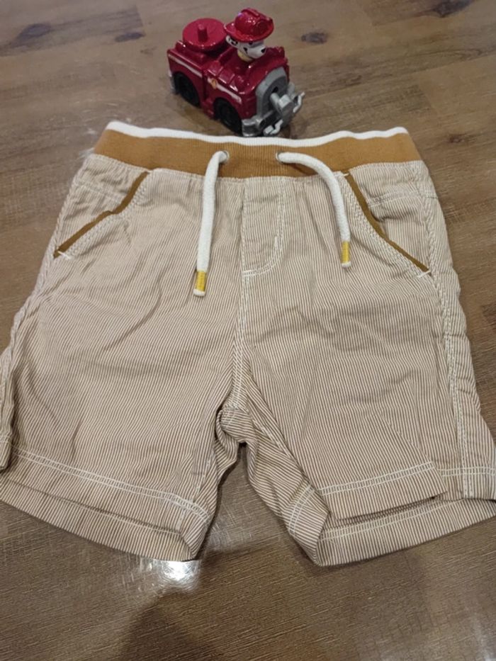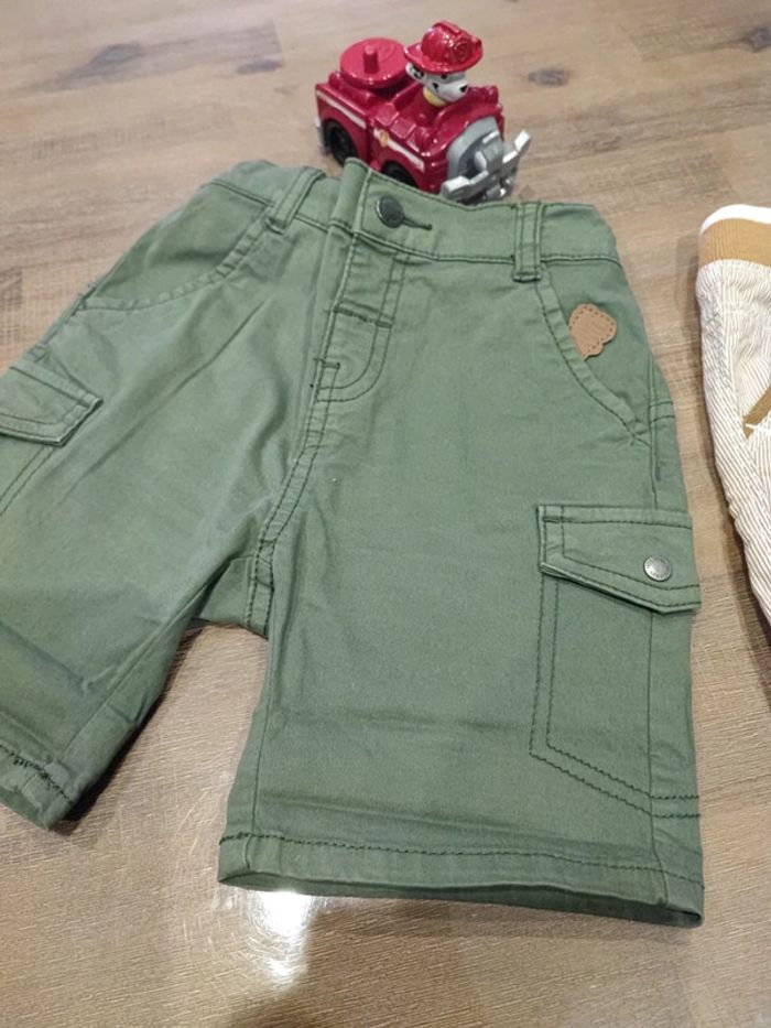 2 shorts Marque Gémo 24mois, vert kaki Marque Obaibi 23mois 86cms, marron rayé beige Tailles ajustables Très bon etat #cyboulette44garcon24mois