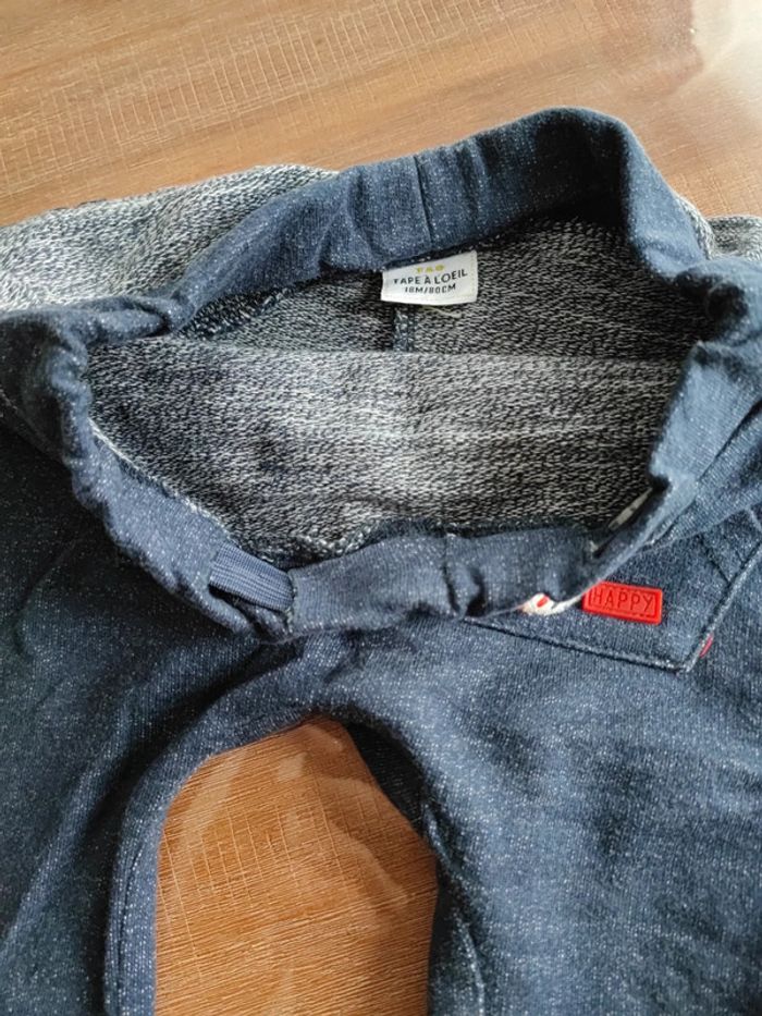 Bas de jogging bleu marine chiné avec bande latérale, slim, taille ajustable + élastiques, poche ventrale, porté quelque fois, taille 18mois 80cms, marque TAO #cyboulette44garcon18mois