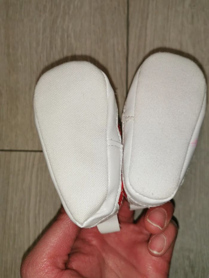 Chaussures bébé Taille 1/6 mois Marque Aubert Blanches et rouges Très bon état, sauf une tâche rose près de la semelle Maison non fumeur Emballage soigné de préférence cartonné N'hésitez pas à visiter mon dressing #la_g_chaussuresfille