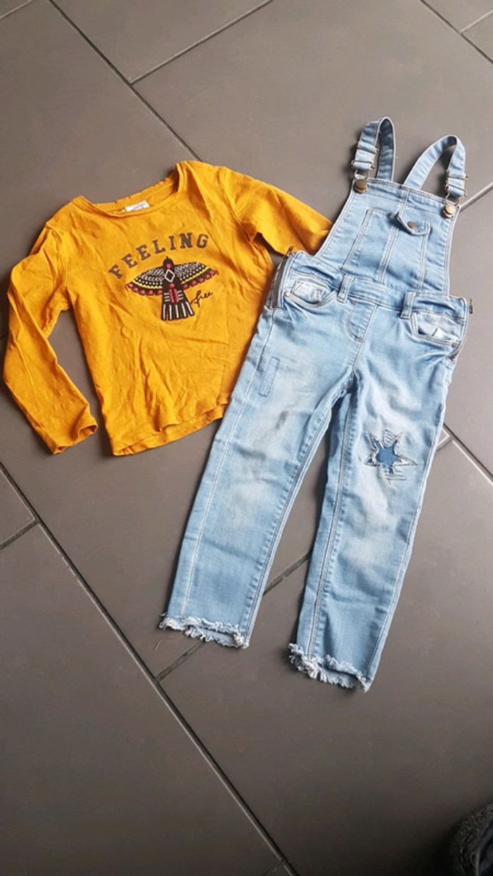 Ensemble tape à l'oeil Salopette 2 ans + tee shirt moutarde 3 ans
