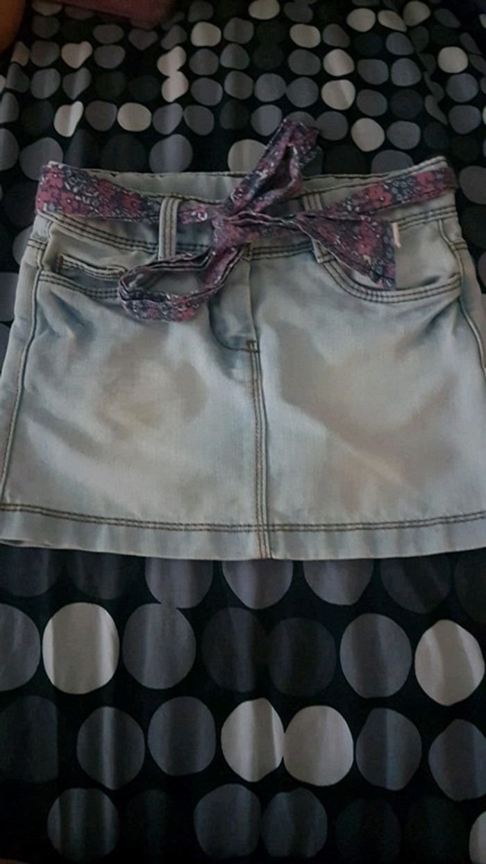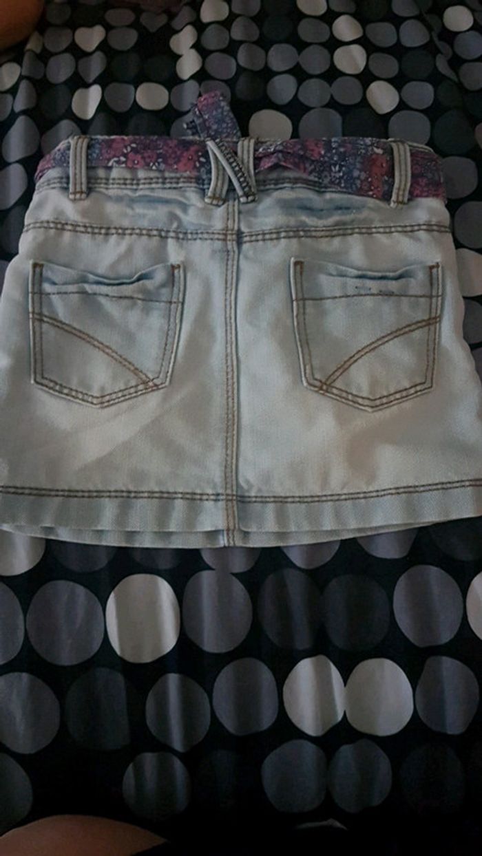 Jupe en jean tape à l'oeil taille 3 ans ceinture en tissu fleuri