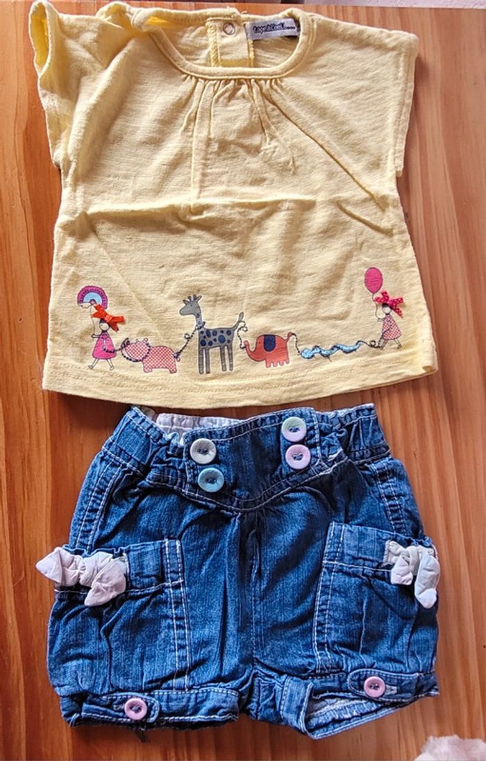 Joli ensemble composé d'un short en jeans et tee-shirt #fille3moistattoogirl_3