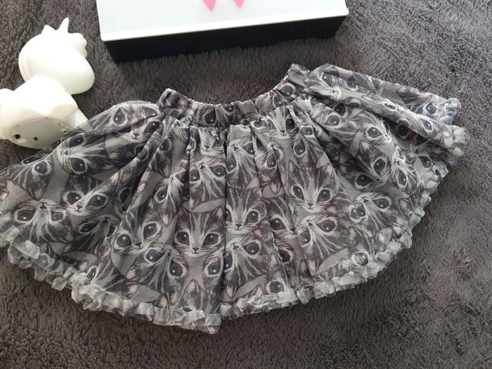 Très jolie jupe à volants en tulle ,bien bouffante Imprimé têtes de chat #fille3anstattoogirl_3 #fille3ans #jupe3ans #chat3ans