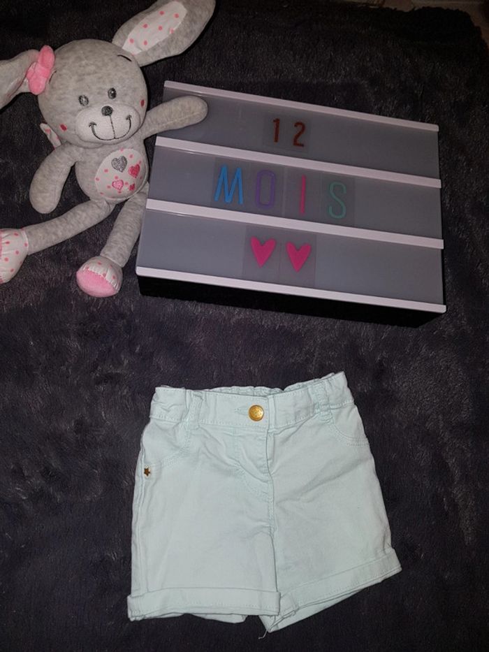 Short jeans On ne voit pas bien la couleur sur la photo mais il est vert d'eau #fille12moistattoogirl_3 #fille12mois #short12moisfille