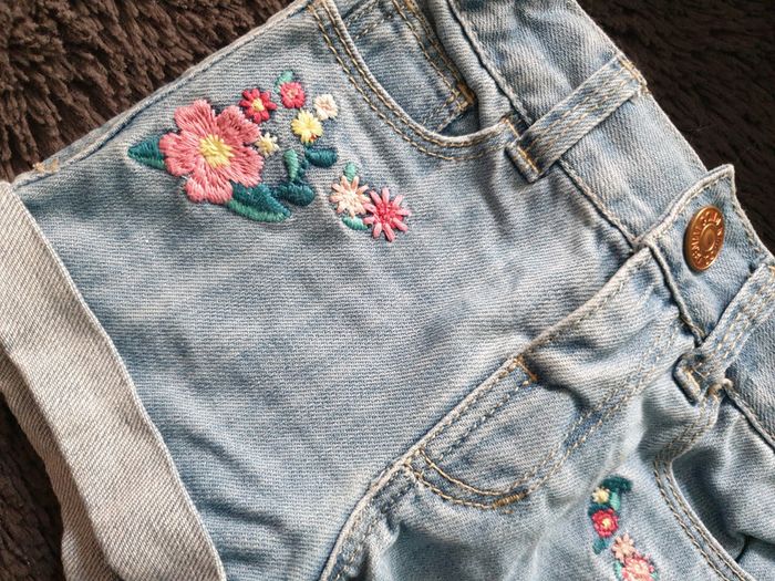 Joli short en jeans fleuri #fille12moistattoogirl_3 #fille12mois #short12moisfille #shortjeans12moisfille