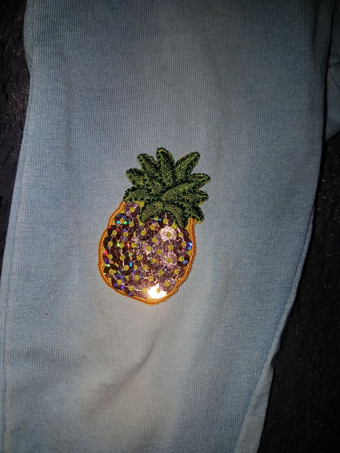 Trop mignon ce petit jeggins en jean avec empiecement ananas et froufrous aux fesses Taille 6/9 mois correspondant à 74cm #fille9moistattoogirl_3