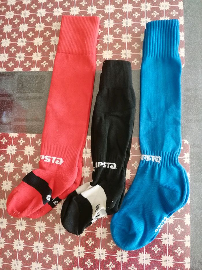 Lot de 3 paires de chaussettes de foot. Très très peu mises donc en bon état. Pointure 27/30. De chez décathlon.