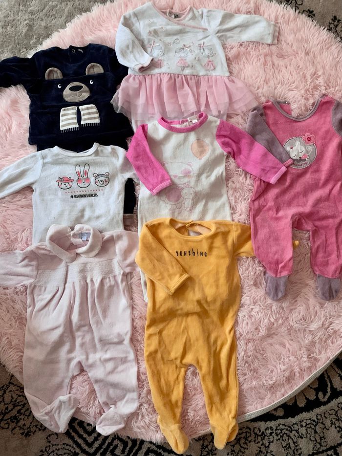 Bonjour 👋🏻 Je vend un lot de pyjamas et bodys bébé fille en 6 mois, en très bon état ! ☺️ Le Lot comprend : - 7 pyjamas - 9 bodys N’hésitez pas à me contacter pour plus de renseignements ! ☺️