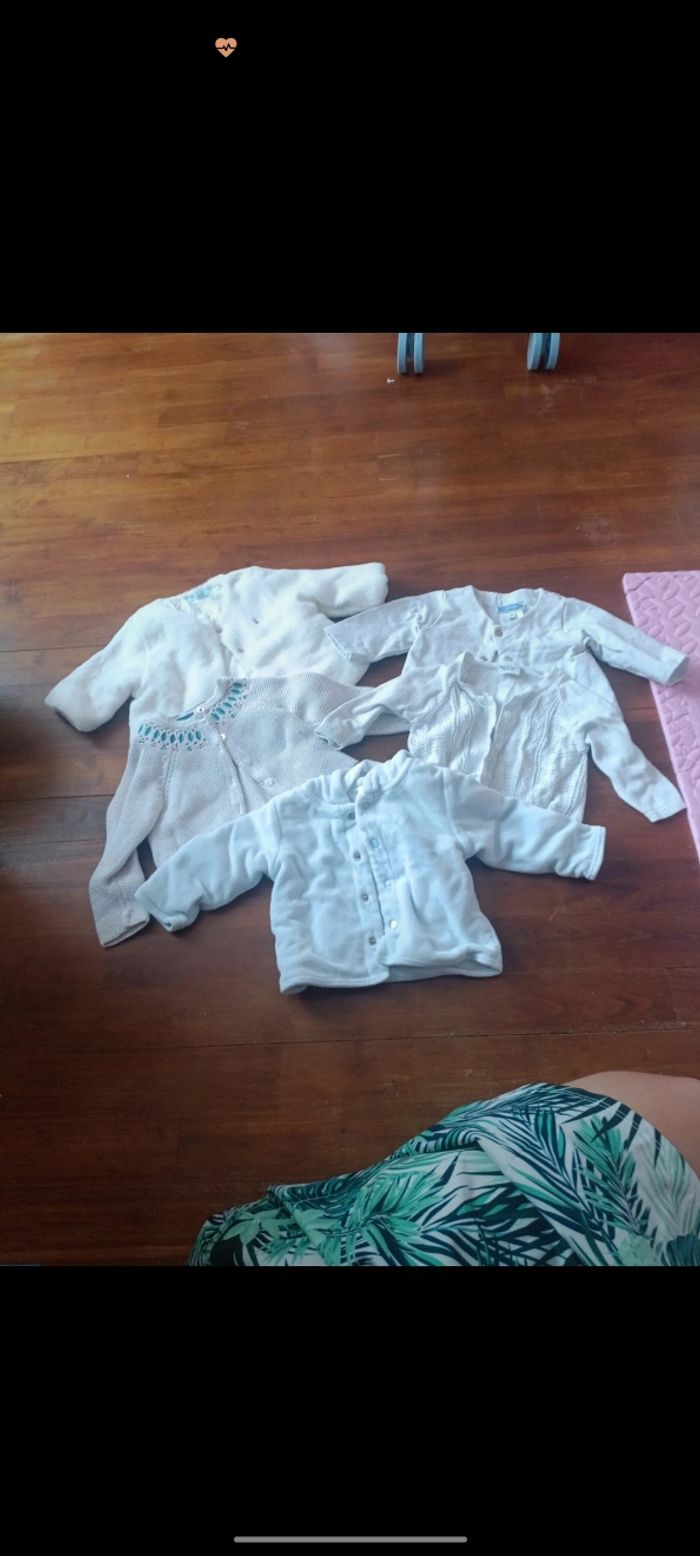5 Gilets blanc taille 3 mois 1 Jacadi 1 tape a l'oeil 2 Okaïdi 1 tex avec capuche bleu clair