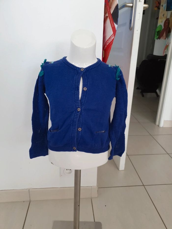 Joli gilet catimini broderie sur les epaules petites poches de chaques côté. Boutonnière pour fermeture. Manches légèrement ajourées. Catimini #3ansvalco8572