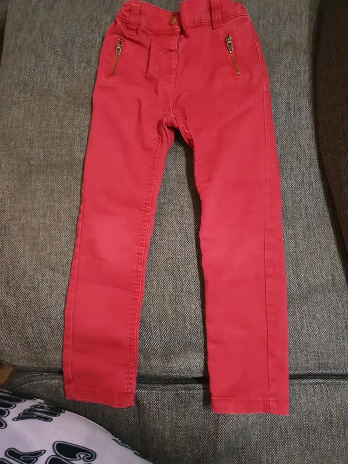Pantalon rouge. Coupe droite. 2 poches a fermetures eclaires de chaques côtés. 2 poches a l arrière. Charlie et prune #5ansvalco8572