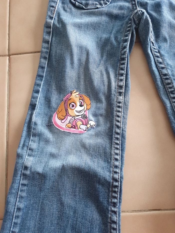 Jeans coupe bootcup une pièce a été rajouté pour masqué une usure au genou. Verbaudet 4 ans. #4ansvalco8572