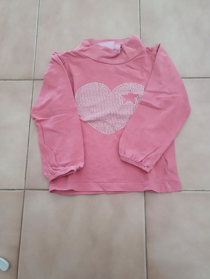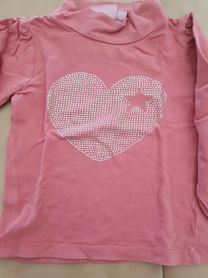 Tee-shirt manches longues rose avec coeur en strass col haut. 4 ans NKY #4ansvalco8572