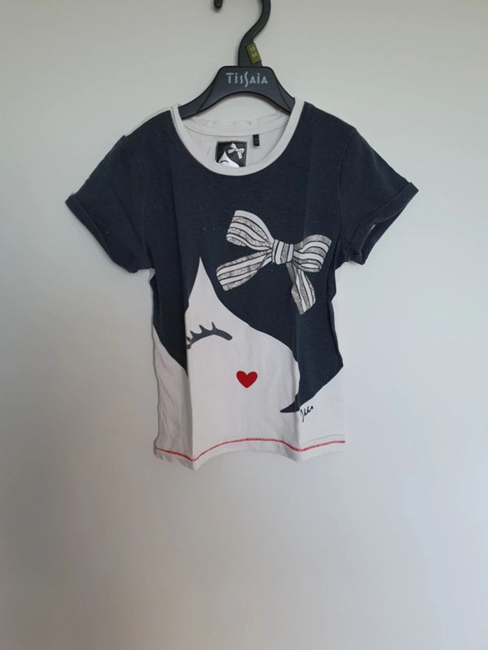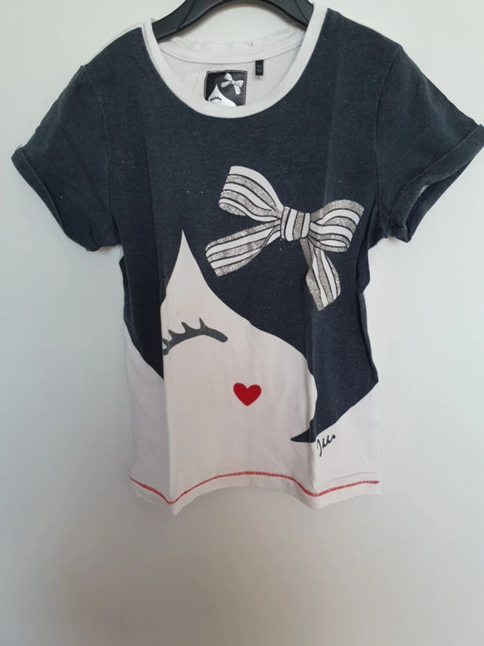 Tee-shirt manche courte imprimé visage et noeud pailleté. 4 ans ikks #4ansvalco8572