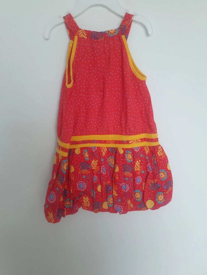 Robe rouge a bretelles thèmes florale. Motifs colorés. La compagnie des petits 2 ans. #2ansvalco8572