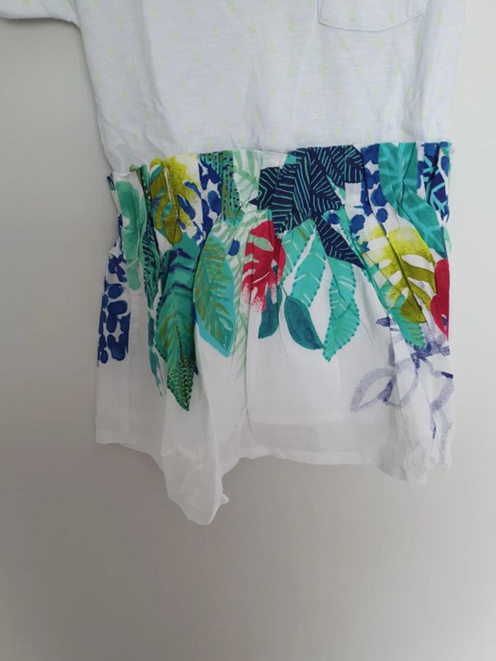 Robe manches courtes haut blanc avec petit motif fluo et poche a la poitrine côté coeur et bas motif feuille. 2 ans catimini. Neuve possible a 20 euros (doublon). #2ansvalco8572