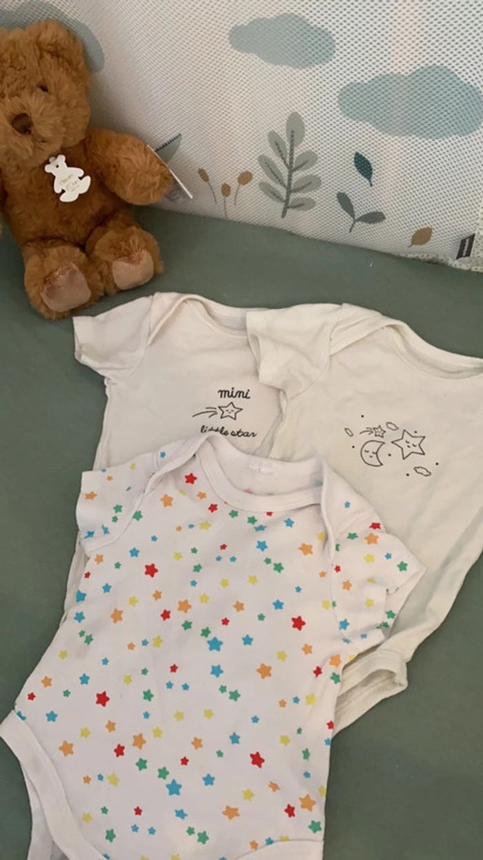 Vend lot body manche courte 1 mois, en bon état. Je ne sais plus la marque.