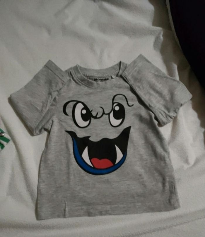 Tee-shirt, manches longues, marque Orchestra, taille 2 ans, gris, imprimé sur le devant, bon état : porté mais pas de traces d'usure
