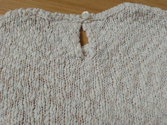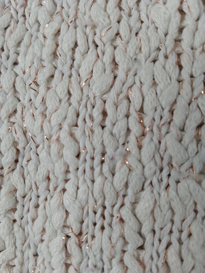 Pull ajouré, brillant avec fibre métallique. Beaucoup porté mais reste en bon état