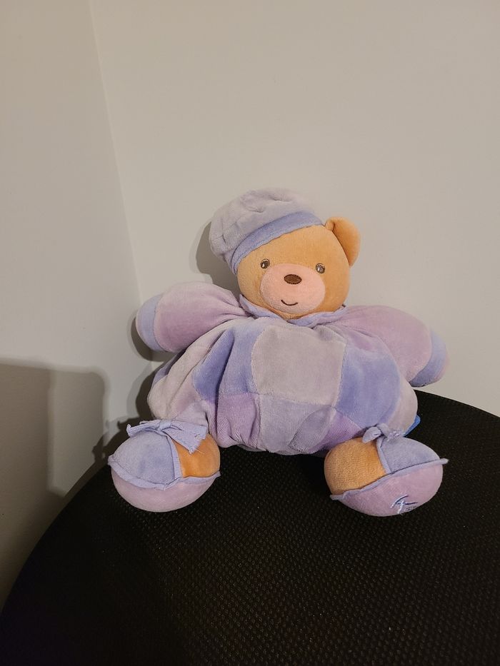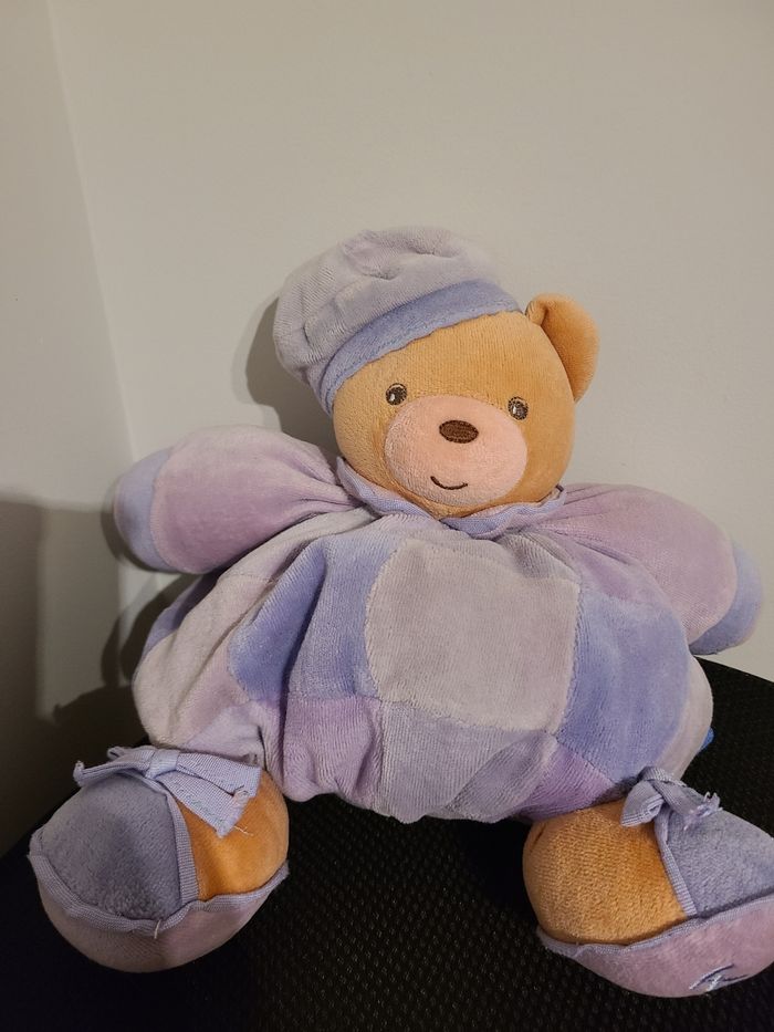 Kaloo Doudou boule ours mauve violet bonnet pantoufles
