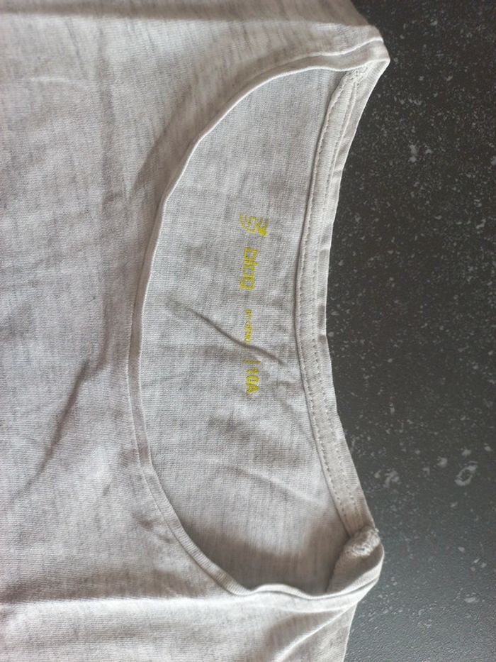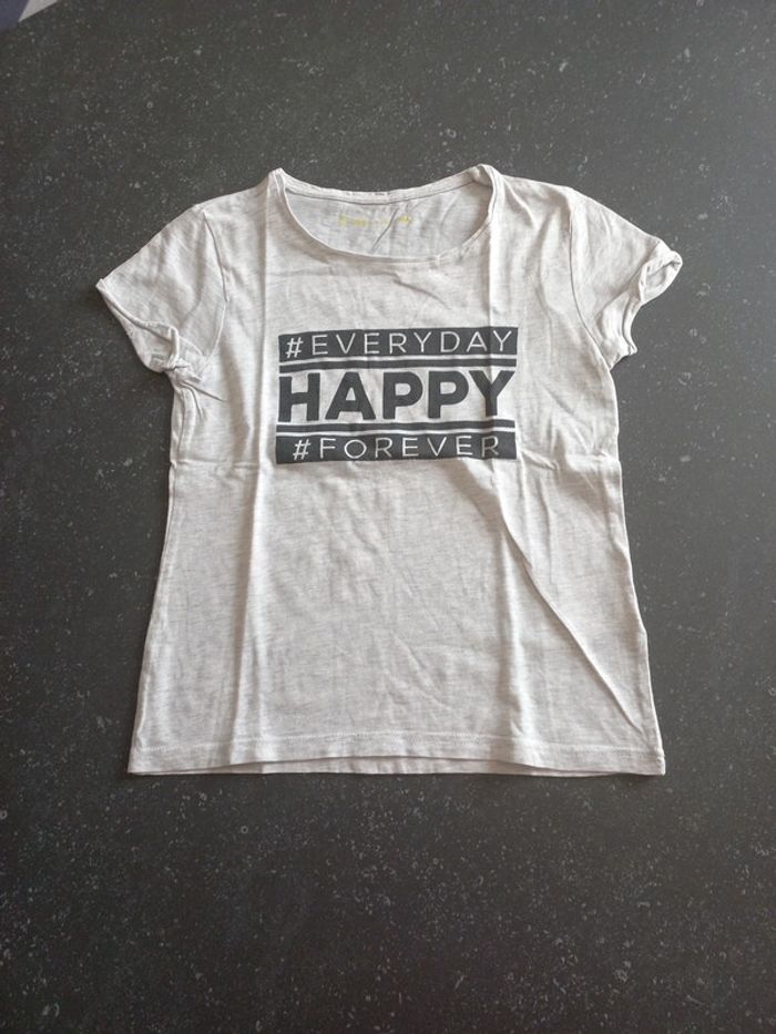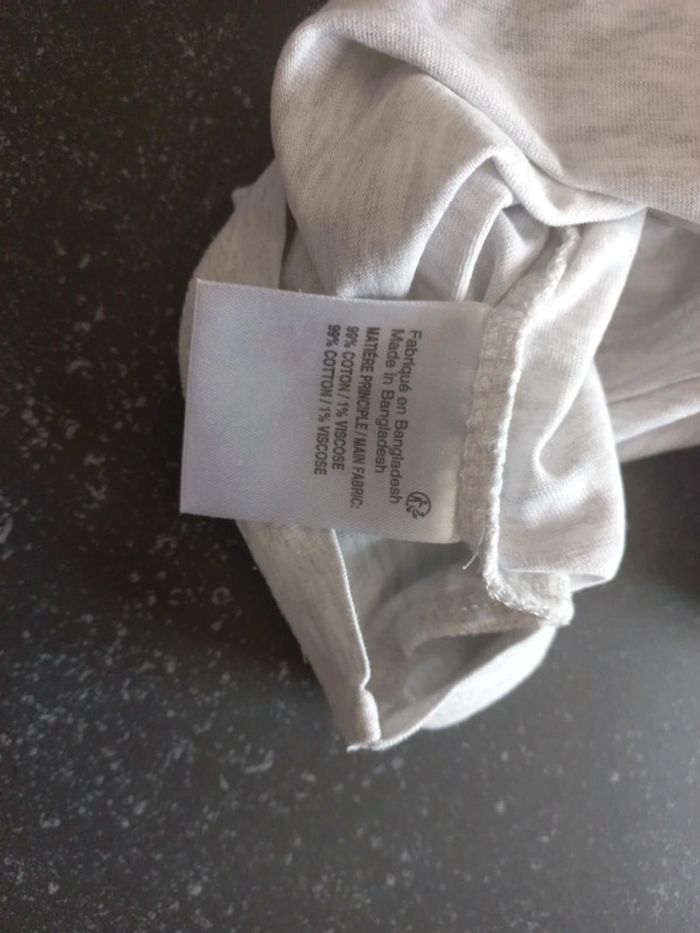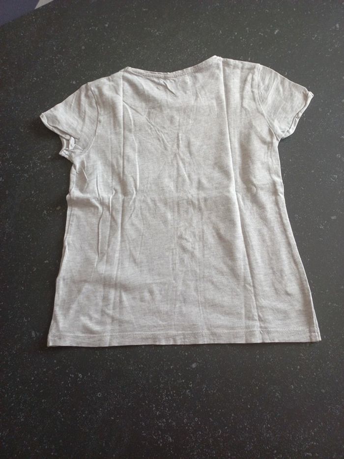 #10ansfillevanessa357 Tee shirt 10 ans gemo très bon état Gris chiné très clair et noir