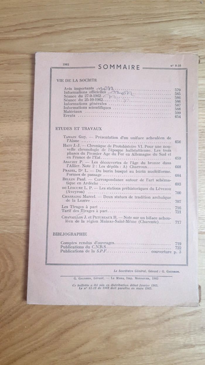 Bulletin de la société préhistorique française - 1962 9-10 - photo numéro 2