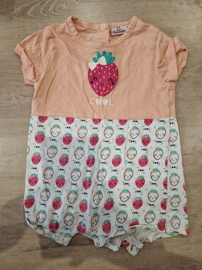 Lot de 2 tenus été 12 mois fille. 1 combishort 12 mois pommette 1 ensemble tunique et short sans marque 12 mois Tous les deux en très bon état
