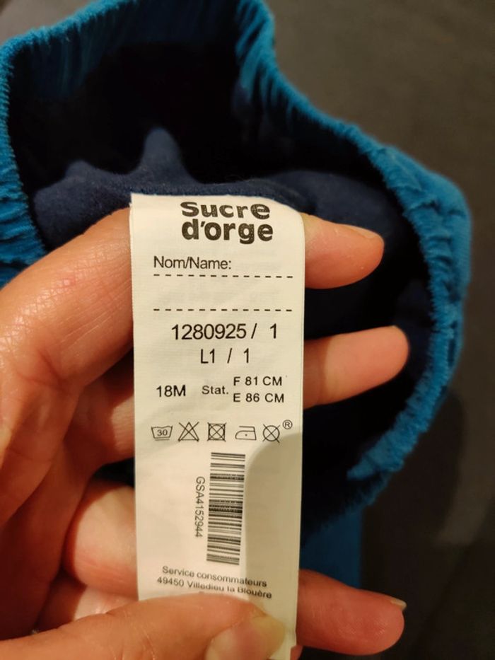 Pantalon velours couleur bleu canard neuf, juste lavé de la marque Sucre d'orge. Il est parfait pour l'hiver car doublé à l'intérieur. Taille 18 mois #fille18moissteph77230