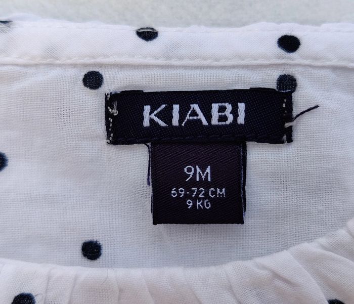 Blouse blanche à pois noir d'été en très bon état de la marque Kiabi. Taille 9 mois #fille9moissteph77230