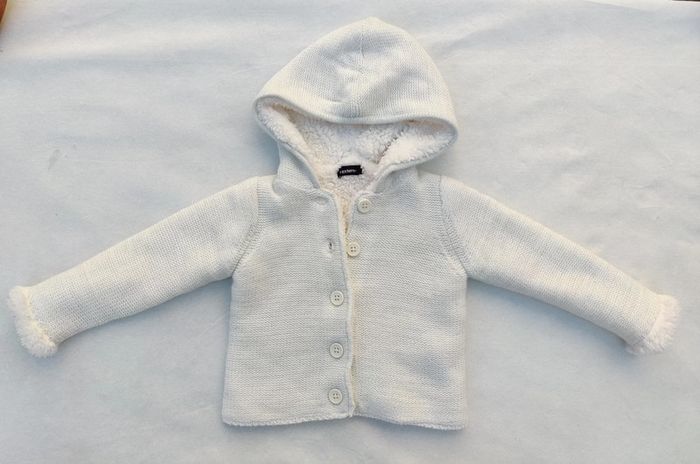 Gilet blanc avec fil argent en maille en Excellent état fourré à l'intérieur de la marque In extenso Taille 9 mois #fille9moissteph77230