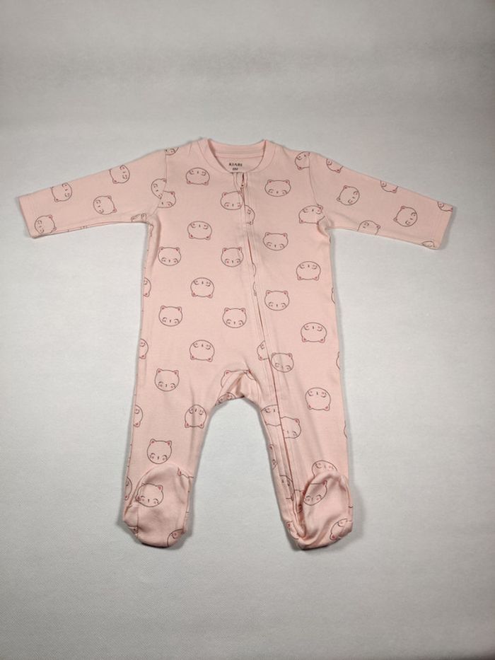 Pyjama coton épais rose pale motif chat en très bon état de la marque Kiabi Fermeture à l'avant du pyjama pour facilité le change de bébé Taille 6 mois #fille6moissteph77230 #fille6moissteph77230