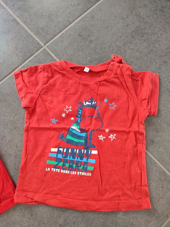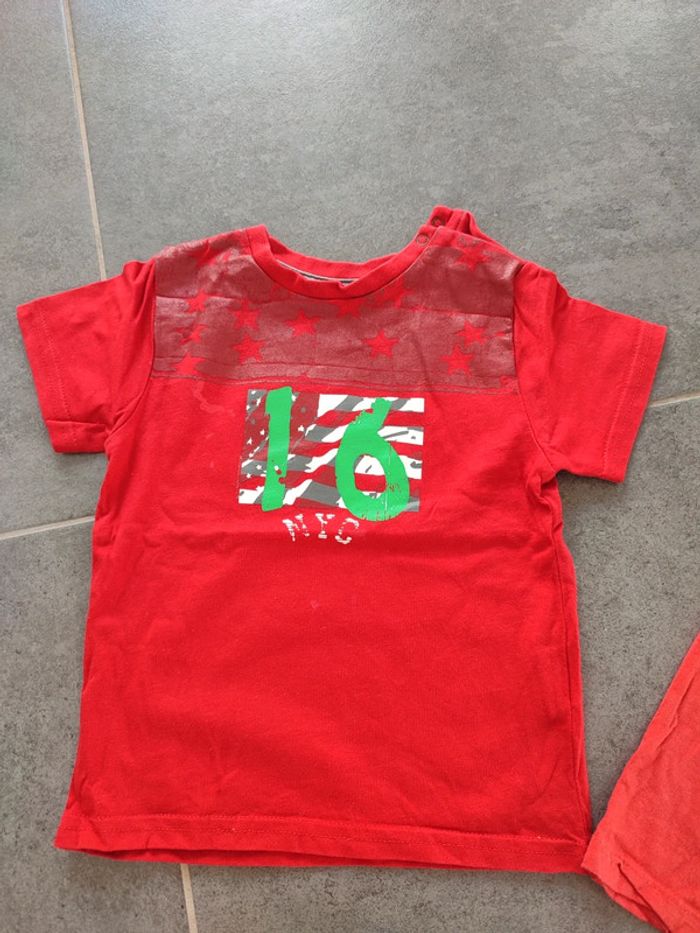 Lot 2 t-shirts rouges + 1 short 18 mois