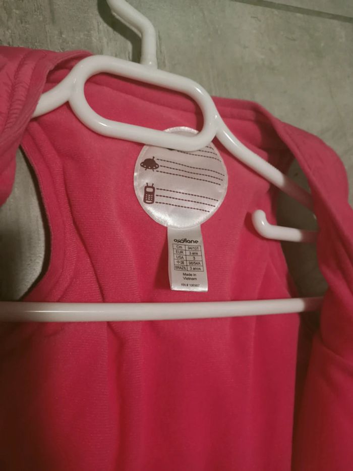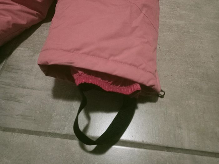 Vends combinaison Sky rose de la marque oxylane (Decathlon) taille 3 ans doublé en polaire pour le haut et avec élastique pour les pieds . Petite tache noire a un pied qui ne part pars .