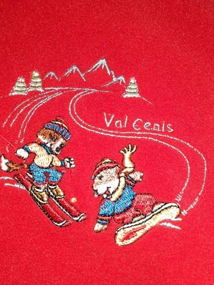 Veste zippée pour les petits. Épaisse et zippée, confortable pour l'arrivée du froid. Broderie marmottes skieuses Val Cenis #misspoulette18a24mois #misspoulette12a18mois #vestepolaire #polaire18mois #ski