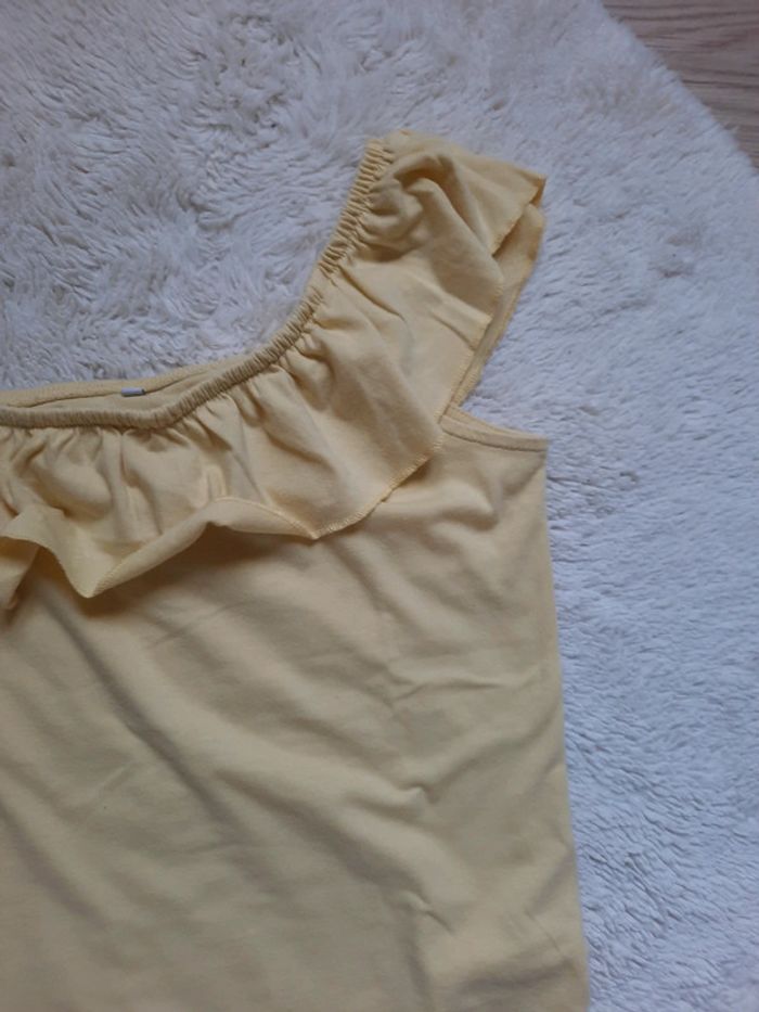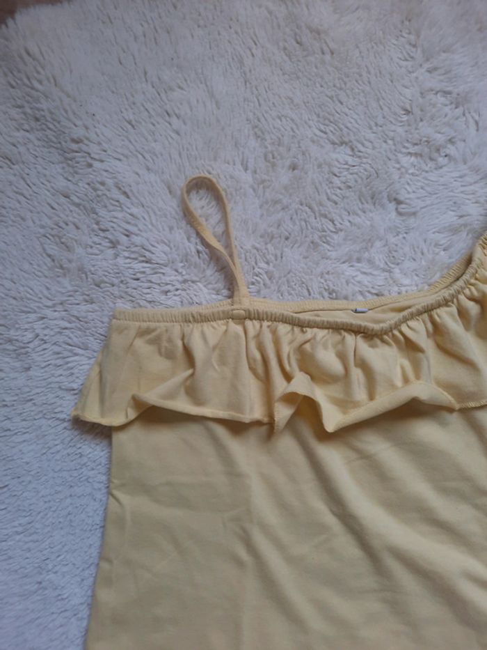 Top débardeur jaune pâle, 1 bretelle et 1 volant, taille 12ans, très bon état #celineggnt_fille12ans