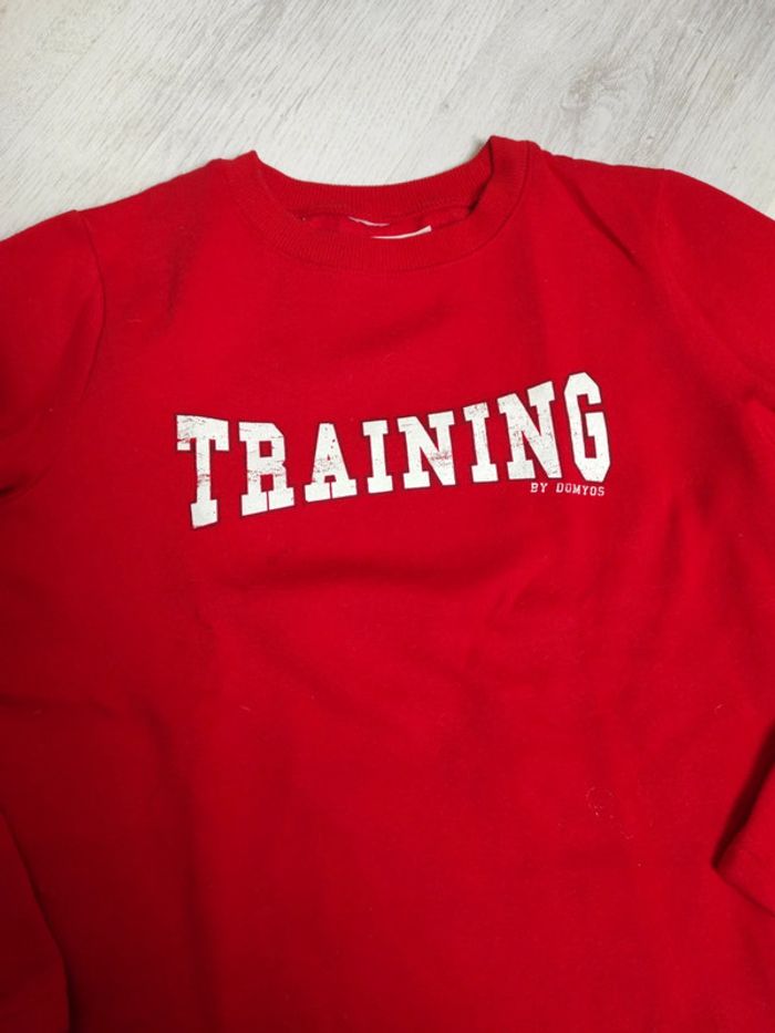 Sweat Domyos rouge et écriture blanche,effet usé devant.en parfait état comme neuf. polaire a l'intérieur. Certaines étiquettes coupé. #vvirg5fille12ans