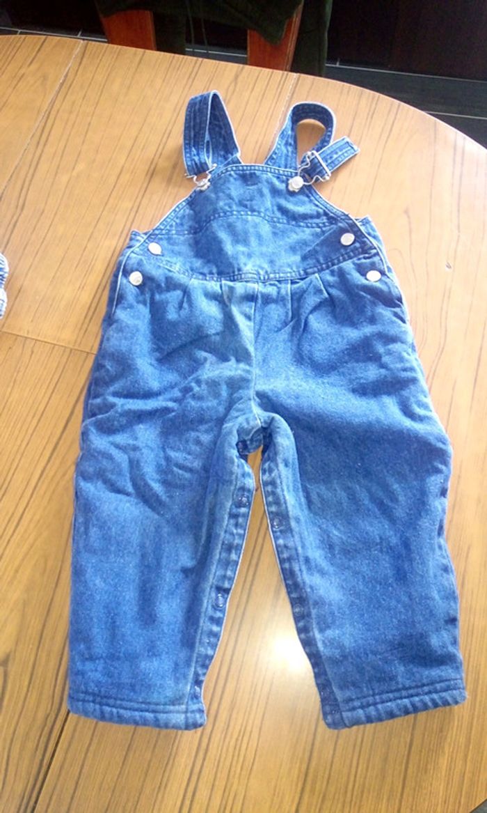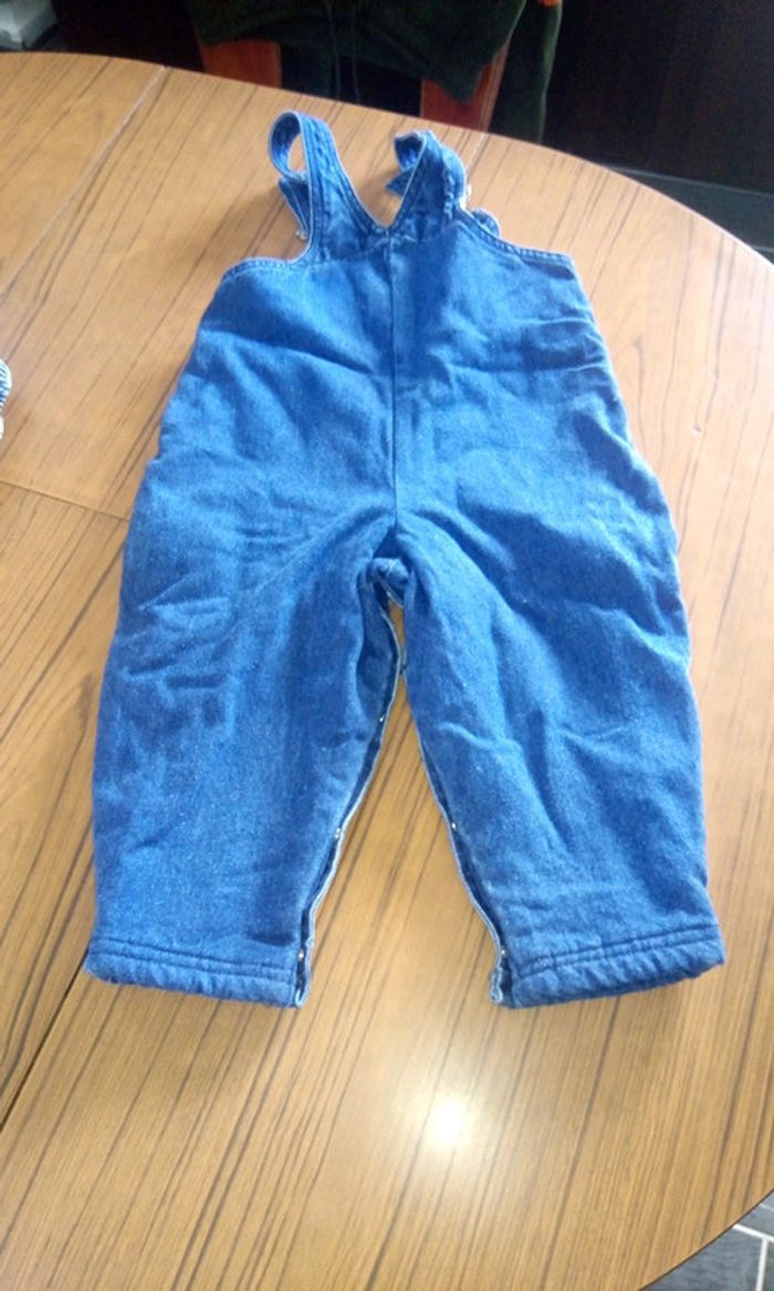 Salopette en jean's bleu foncé moletonné,épaisse et chaude.taille 18mois,81cm.100% coton.
